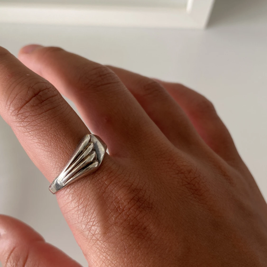 Fin silverfärgad ring. Tyvärr för stor för mig:( Ca 17-18mm i diameter