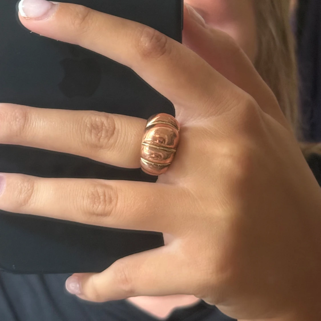 Snygg och unik ring köpt i ItalienđSÄÄÄ cool och snygg. TyvĂ€rr har den rostat en del (se bilder) sĂ„ dĂ€rav sĂ€ljer jag den billigaređ