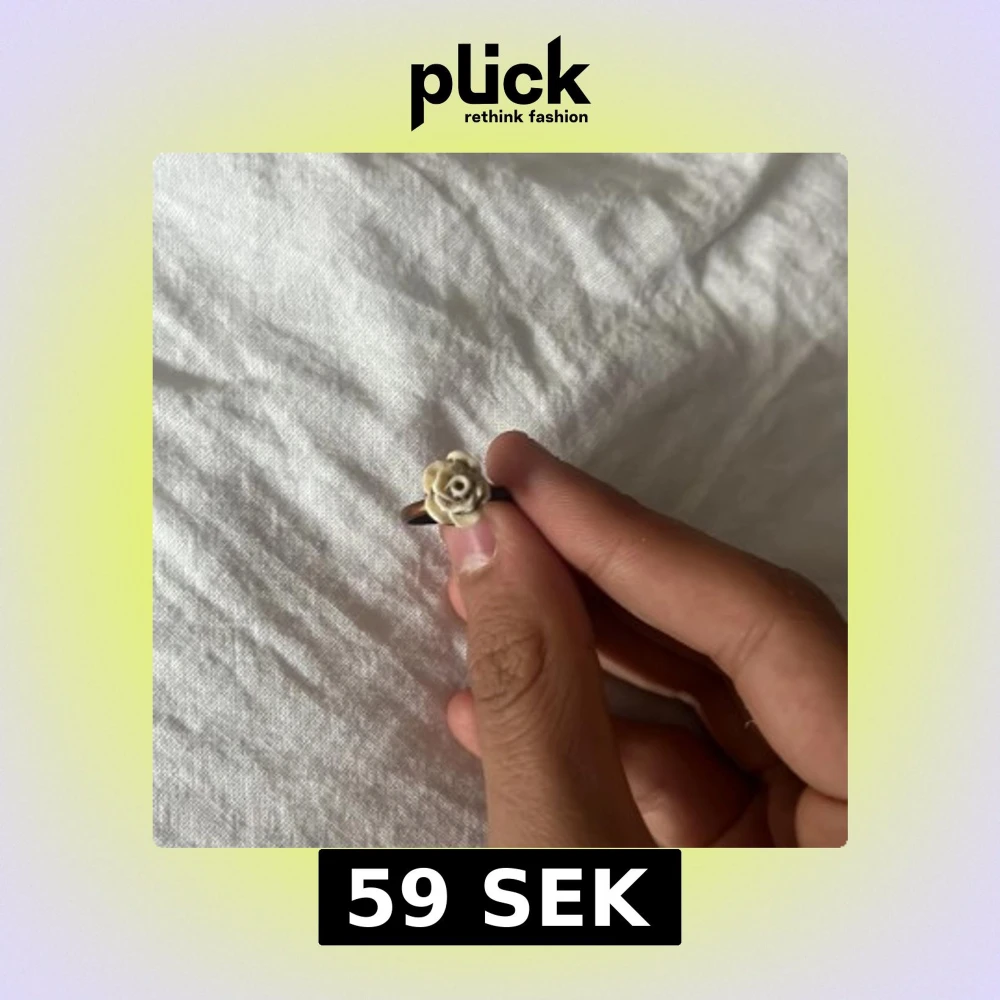 Unik ring med en vit ros som detalj på toppen. Ringen har en enkel och stilren design med en rund form och den vita rosen ger en romantisk och cool vibe. Perfekt för dig som vill sticka ut med något annorlunda och sött.