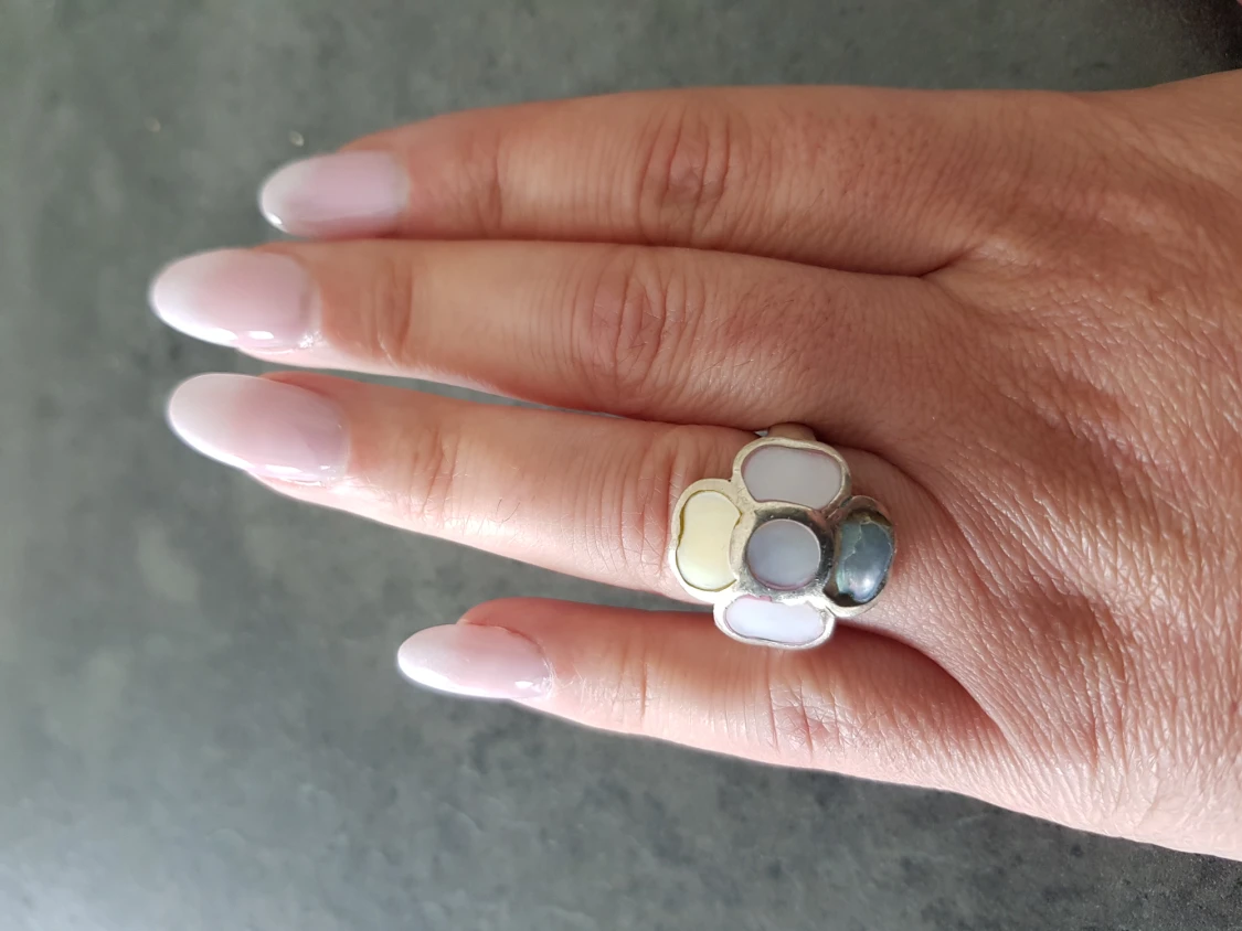 St ca 16 Pärlemor. Ett blad skadat. Silverstämplar finns