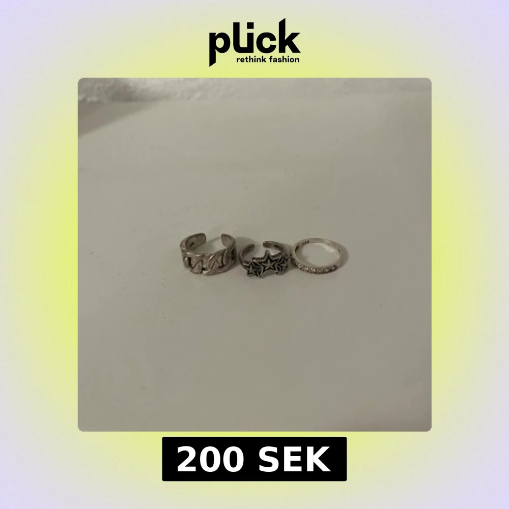 Säljer tre snygga ringar i silver. De två översta är justerbara. Inköpspris totalt ca 750kr.