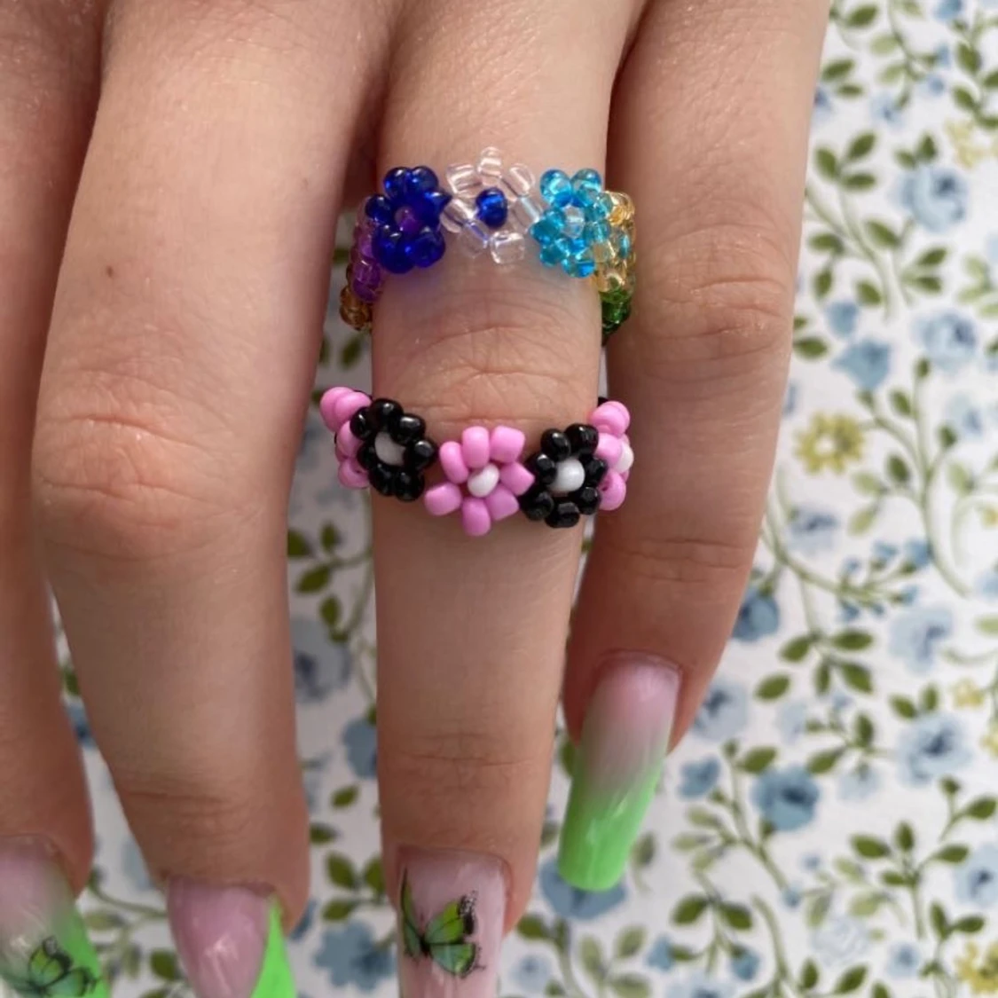 Hej vackra ni! Det hĂ€r Ă€r en blomring och det första ni kan köpa av oss. Ringarna gĂ„r att fĂ„ i valfri storlek och alla möjliga fĂ€rger och nyanser. Hör av er om ni Ă€r intresserade eller har frĂ„gor, hoppas ni ska tycka om vĂ„rt första smyckeđ€đ»đ€
