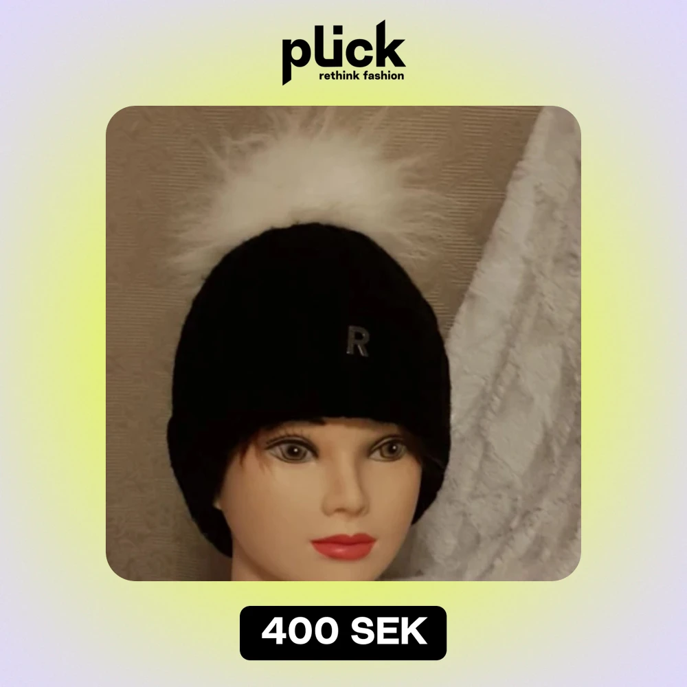 Rock n blue mössa svart å vitt tofs äkta tvättbjörn