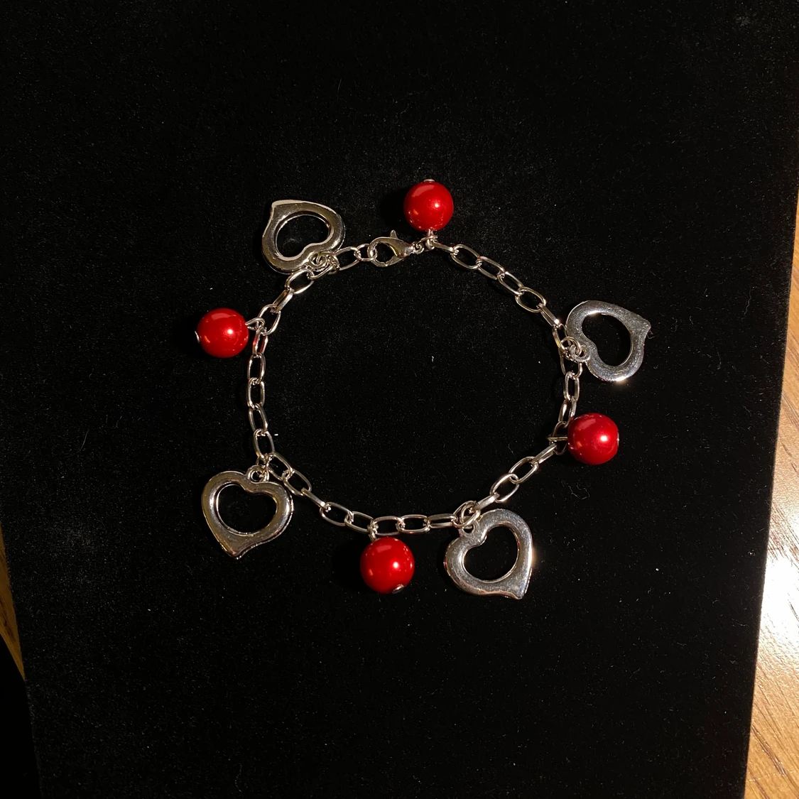 Armband i silver med röda pärlor och hjärtan❤️ Fri frakt✨