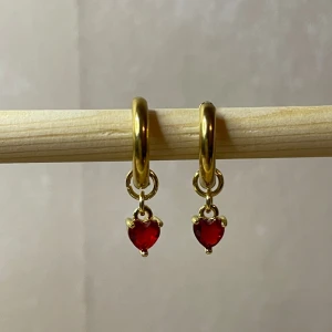 18k guldpläterad Hoops. Röda hjärtan. Ett par. Handgjorda