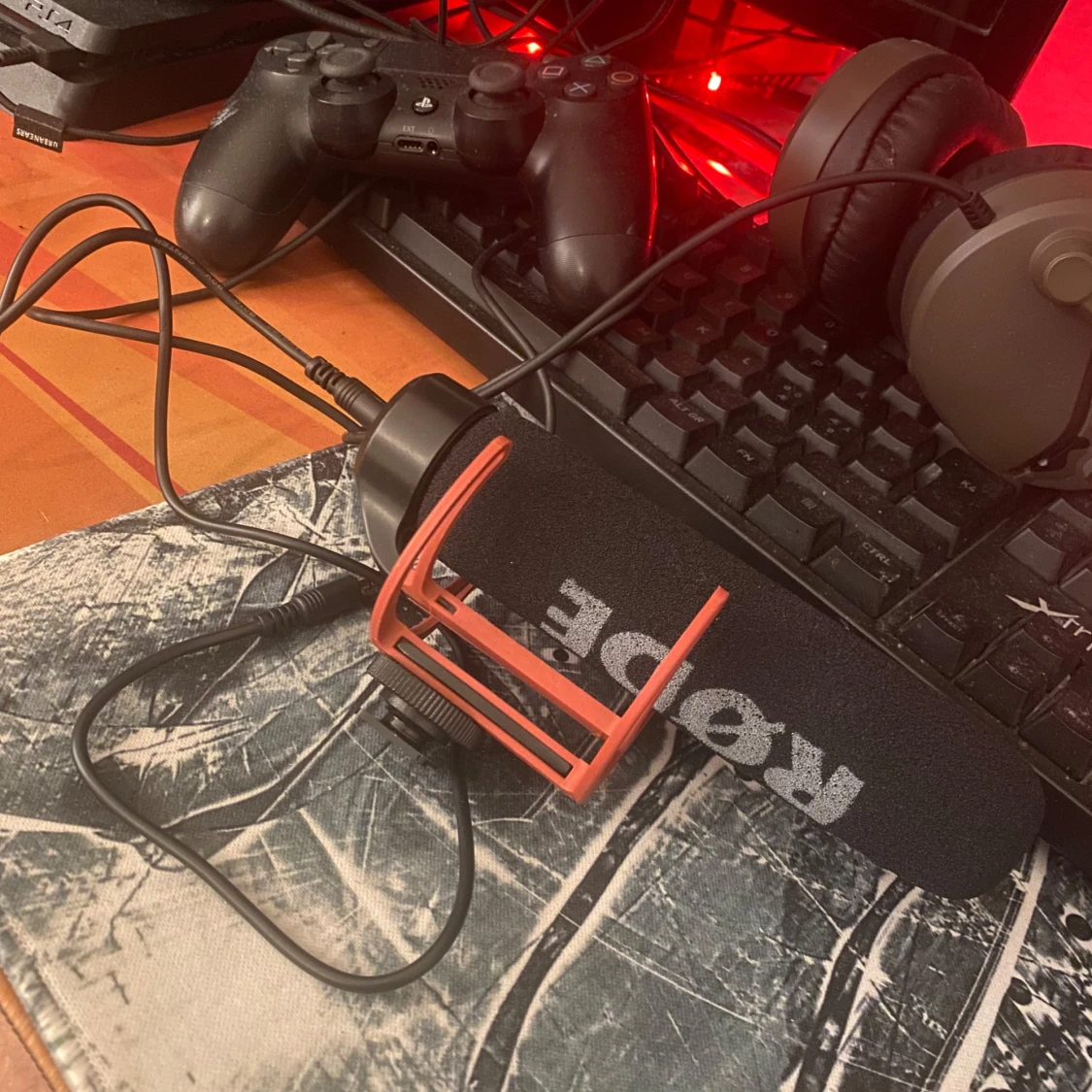 Bilderna visar en RØDE VideoMic GO-mikrofon, perfekt för dig som vill ta ditt content till nästa nivå – oavsett om du streamar, poddar eller gör videos. Enkel att använda och koppla in, med snygg design och bra ljudkvalitet. Passar både nybörjare och erfarna kreatörer.