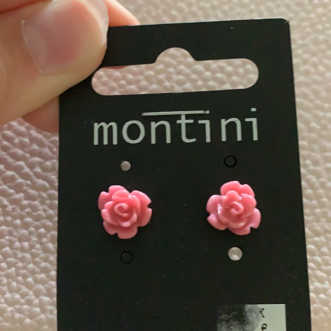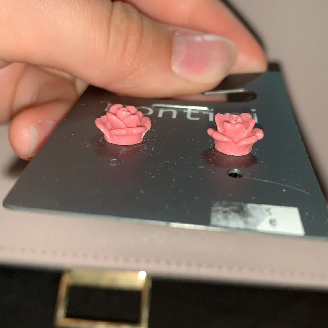 Ett par ros örhängen som aldrig användts, ej äkta silver!