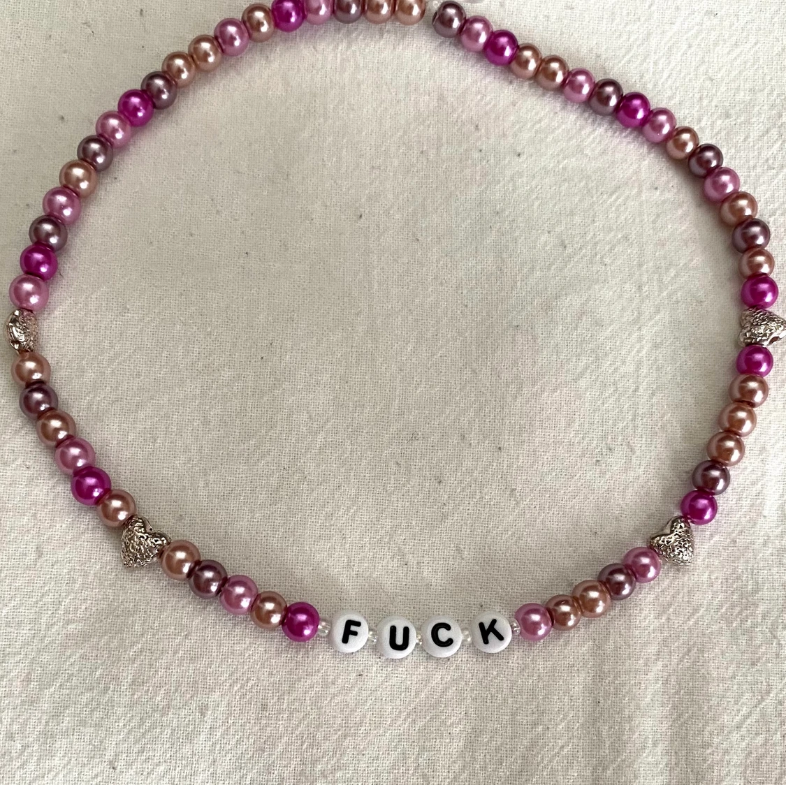 Pärlhalsband med akrylpärlor i olika färger. Lite större än en choker, elastiskt snöre. 💕