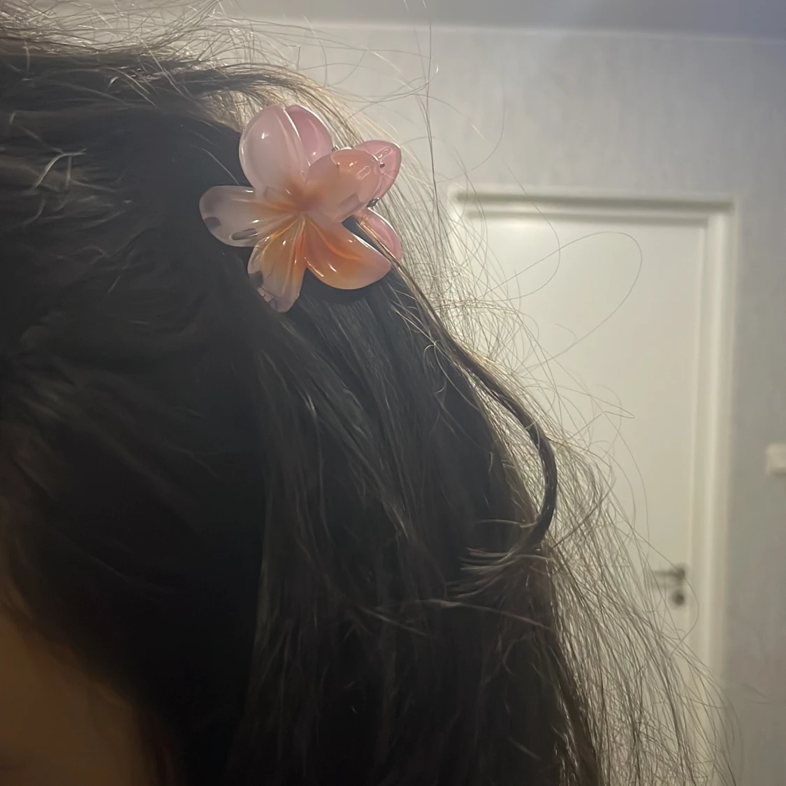 Söt hårklämma i form av en blomma med rosa och orange nyanser. Perfekt för att ge en färgglad touch till din frisyr. Från Italien 🇮🇹