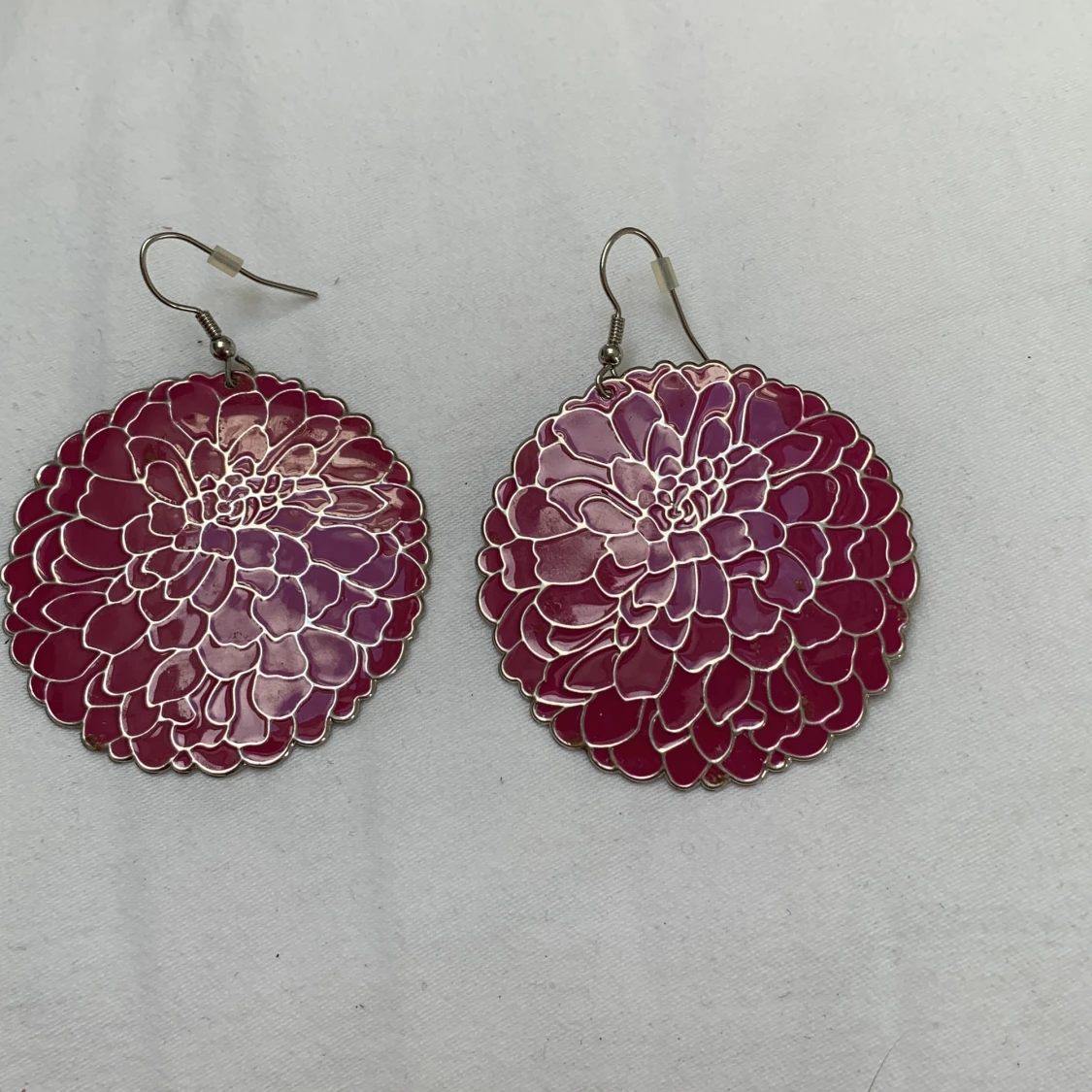 Lite mörk rosa blom örhängen Typ 5 cm i diametern