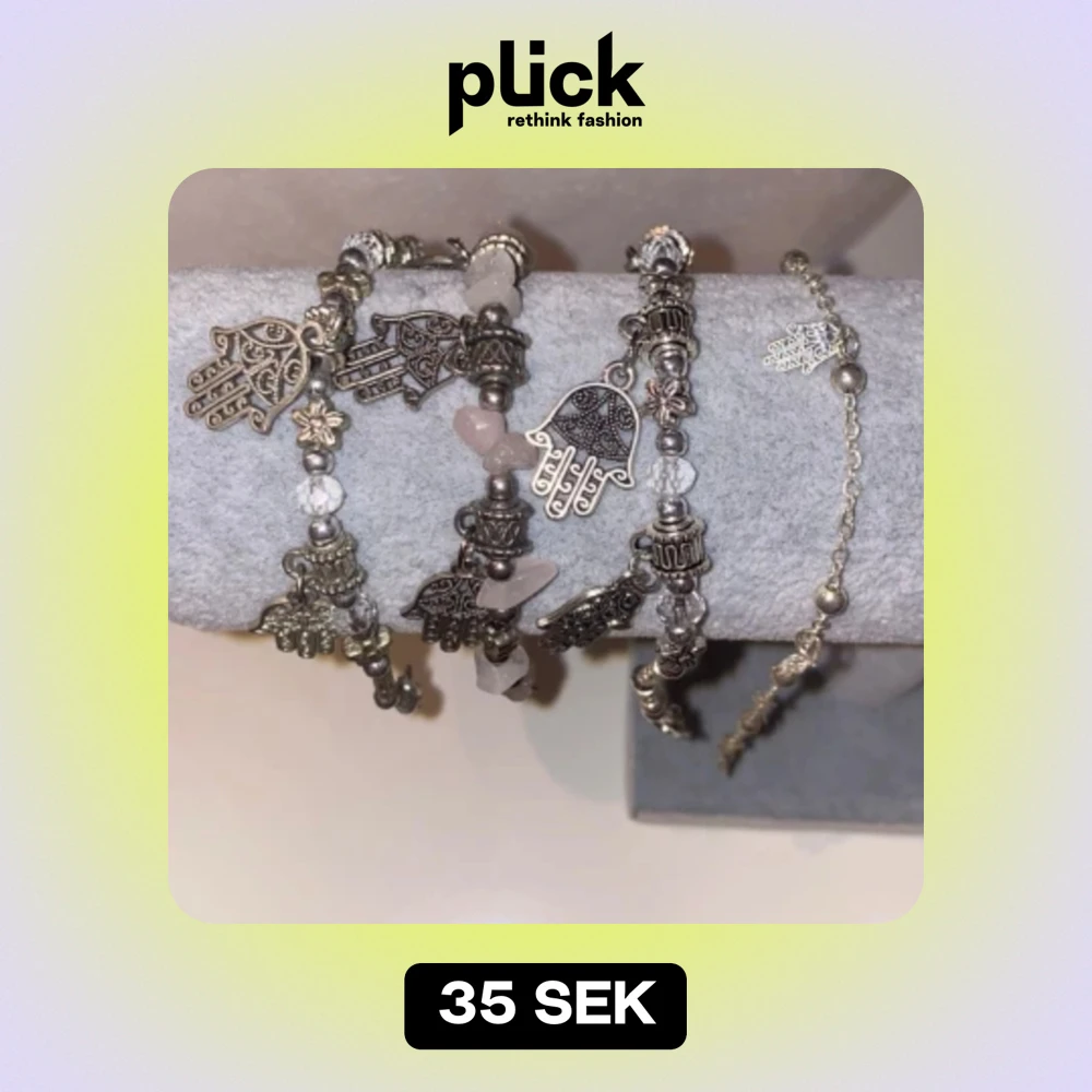 Säljer ett set med flera armband i silverfärg med detaljerade Hamsa-händer och pärlor. Armbanden har en kan köpas gemensamt eller separat! Perfekt för en liten touch till din outfit! 1 för 35, 2 för 60, alla 4 för 100kr!🌟