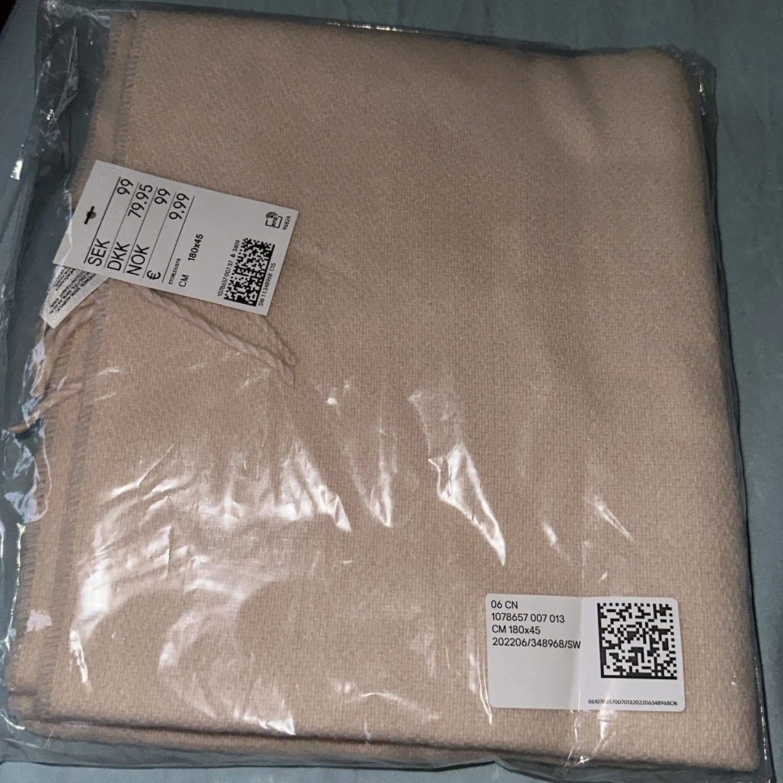 Vävd halsduk i färgen puderrosa. 180x45 Cm. Helt ny och oanvänd. Tagg och förpackningen kvar. Ordinariepris 99 kr