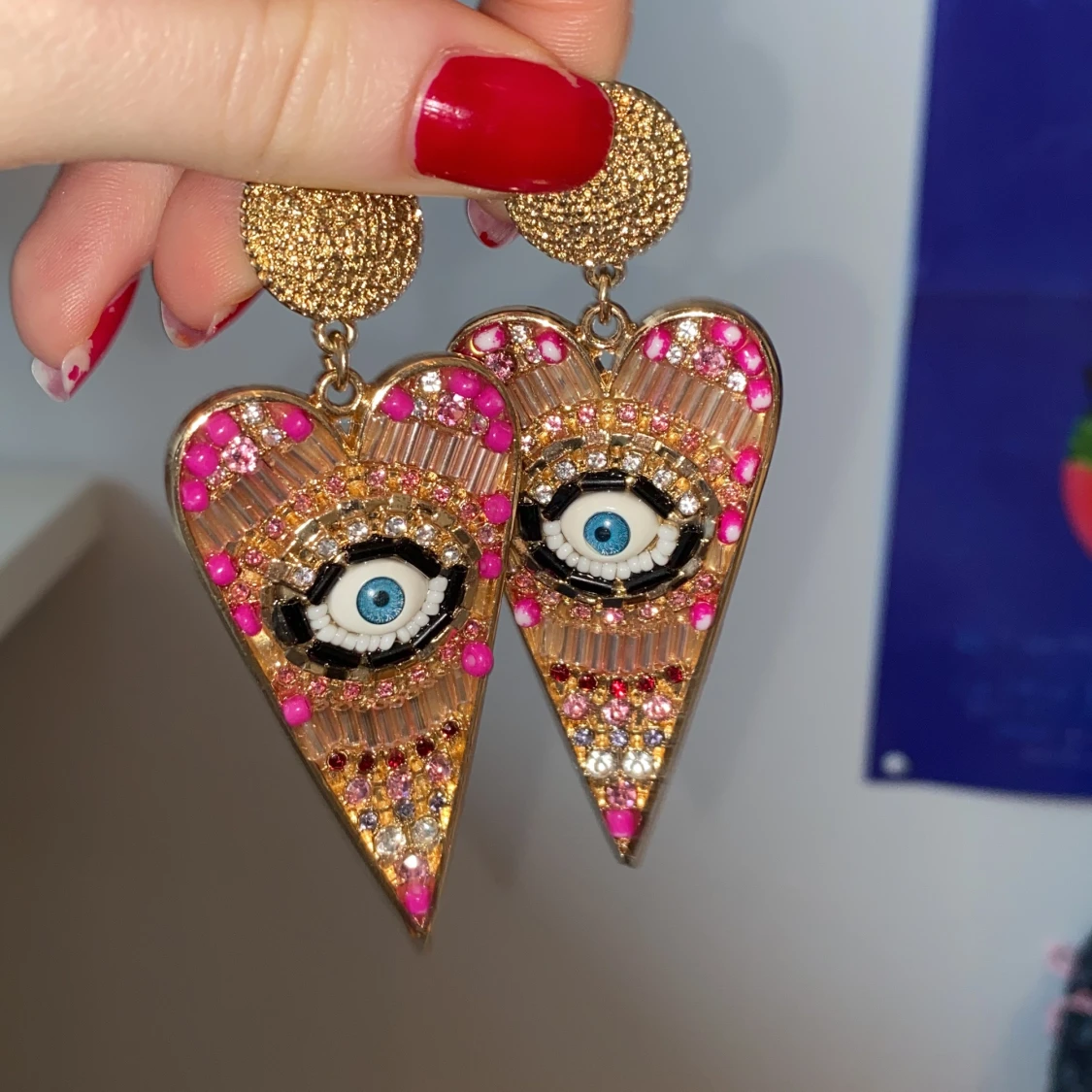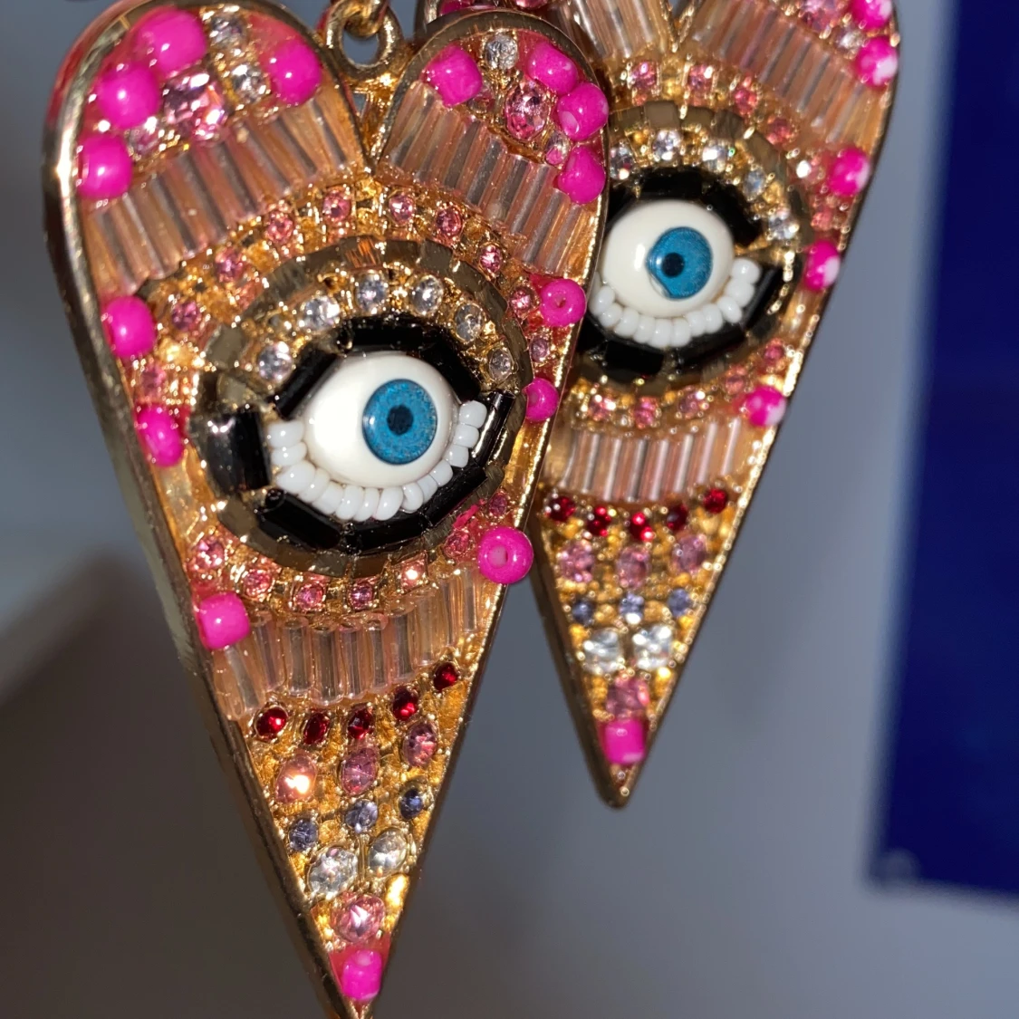 Otroligt coola örhängen med guldiga, rosa detaljer och öga i mitten.💘 Aldrig använda eftersom jag använde de till ett fotoprojekt💜 Betalning via swish, endast seriösa köpare tack💓