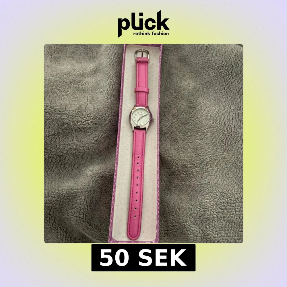 Säljer en stilren klocka från Regal med rosa skinnarmband och silverfärgat runt ur. Klassisk vit urtavla med tydliga siffror. Perfekt accessoar för att sätta färg på outfiten!