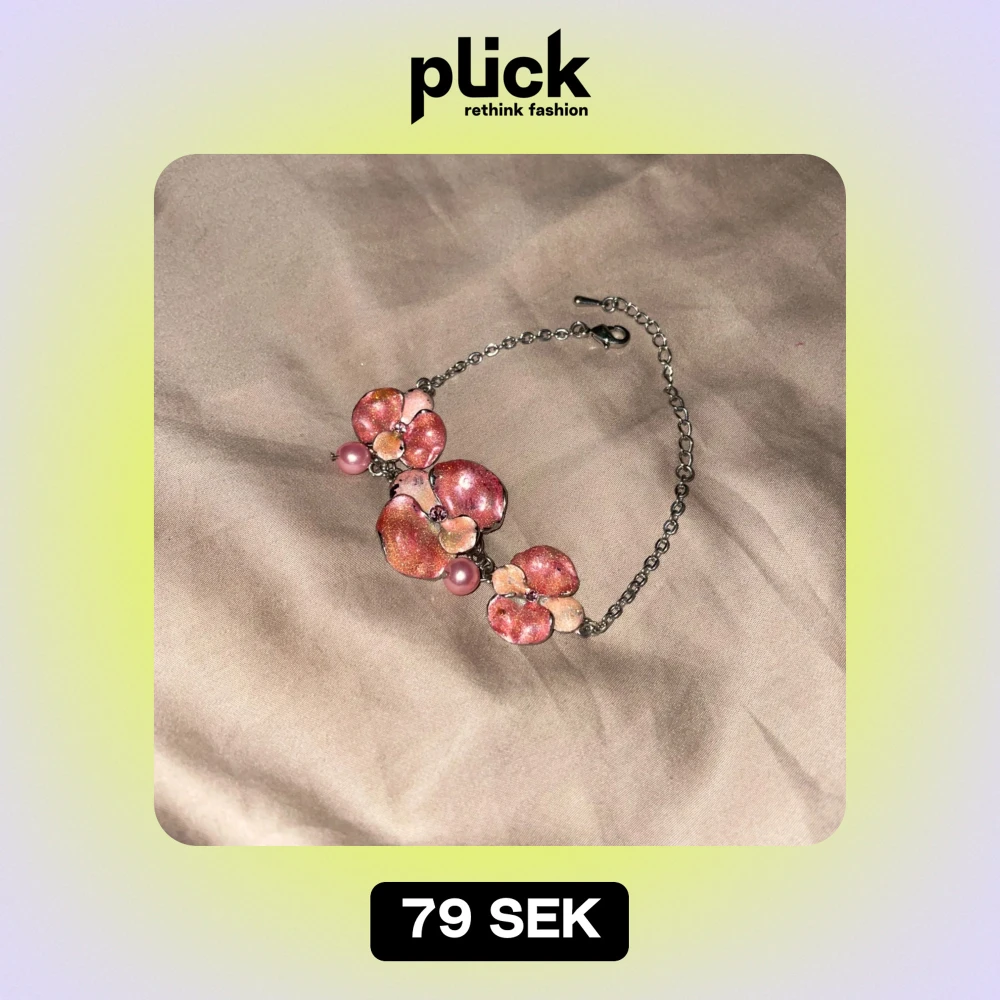 Säljer ett superfint armband med rosa blommor och pärlor. Blommorna har en skimrande yta och armbandet är i metall med justerbar kedja. Perfekt för att piffa upp en outfit till fest eller vardag! 🌸✨ pris går att diskutera 💖