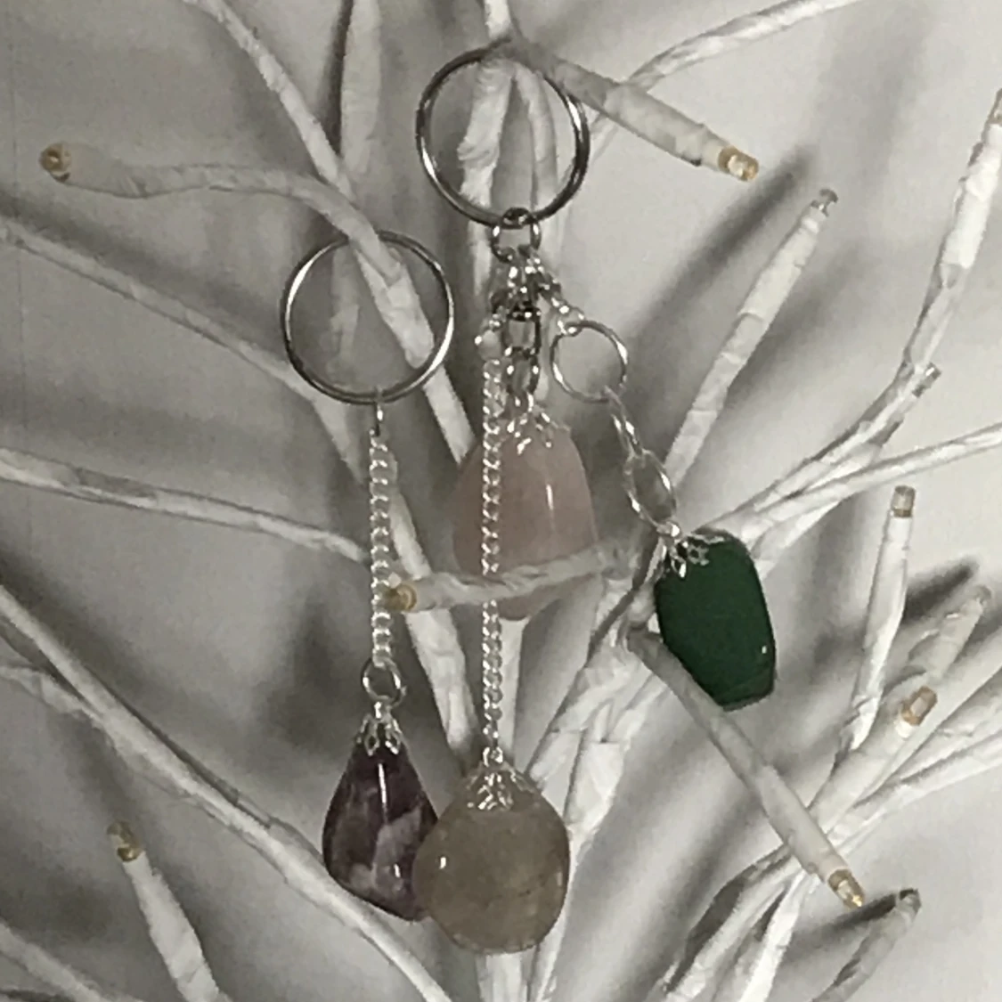 Säljer dessa 4 nyckelringar i ametist, rosenkvarts, bergskristall och adventurin. Nytt oanvänt och handgjort. Kontakta gärna vid frågor, de kostar 40kr st. Har också andra nyckelringar och smycken på min profil. + olika kristall smycken 💍🌺🪷OBS![Design ändrad till wirewrappade stenar, bild 4&5]