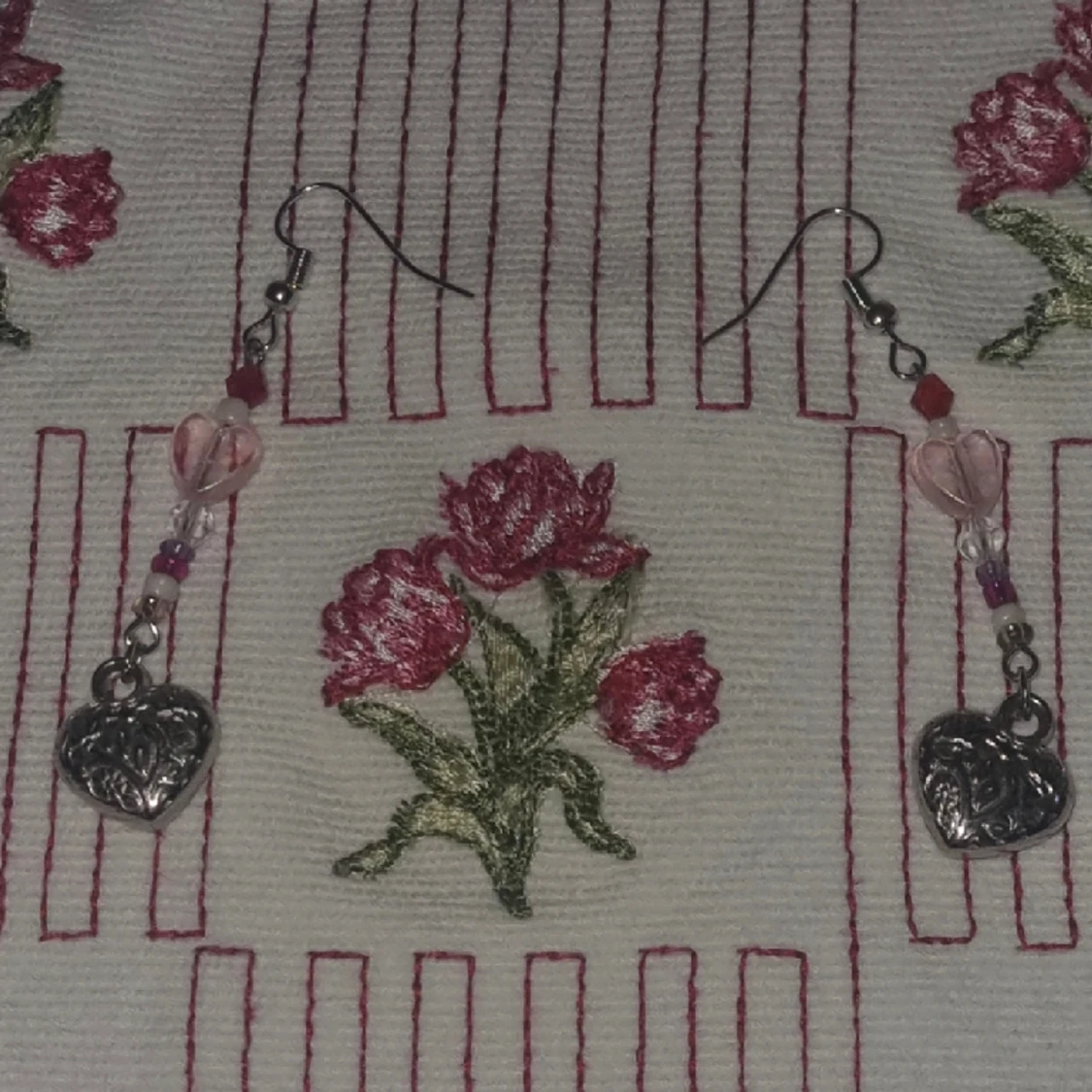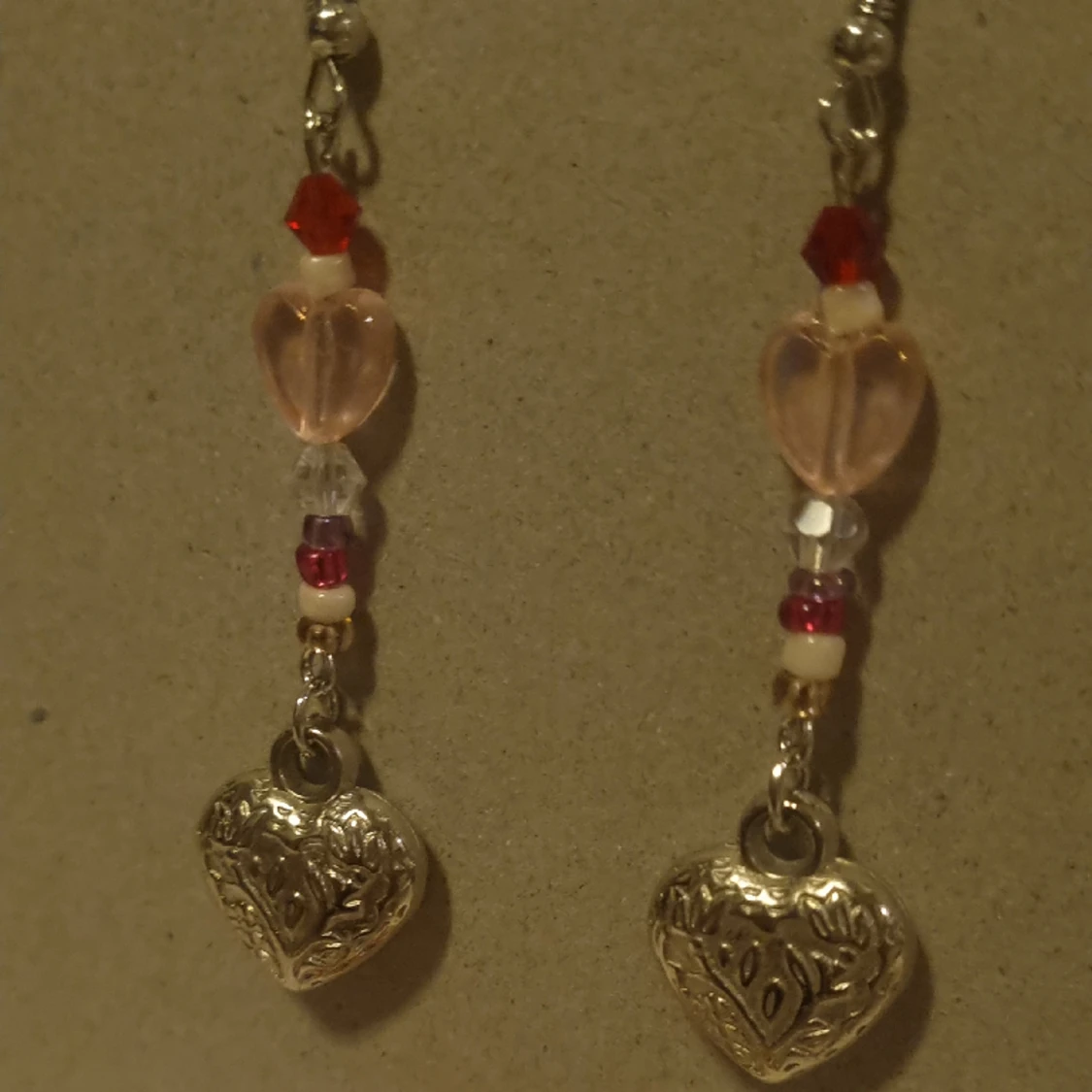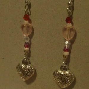 Egengjorda örhängen, pärlor av glas och plast. Nyskick aldrig använd.