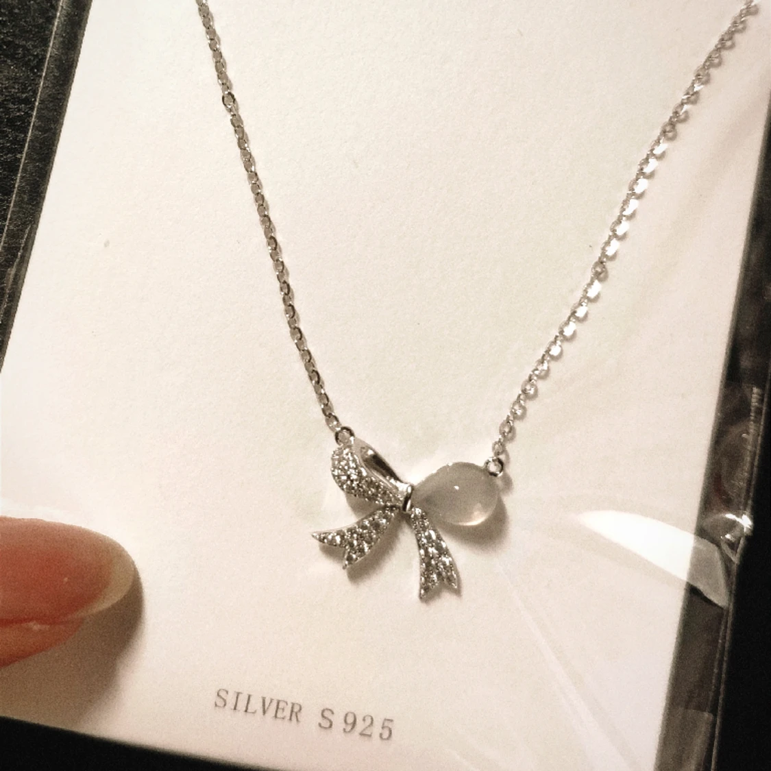 Gulligaste halsbandet gjord av 100% sterlingsilver. Har små kristaller och en vitjade pärla som detalj.