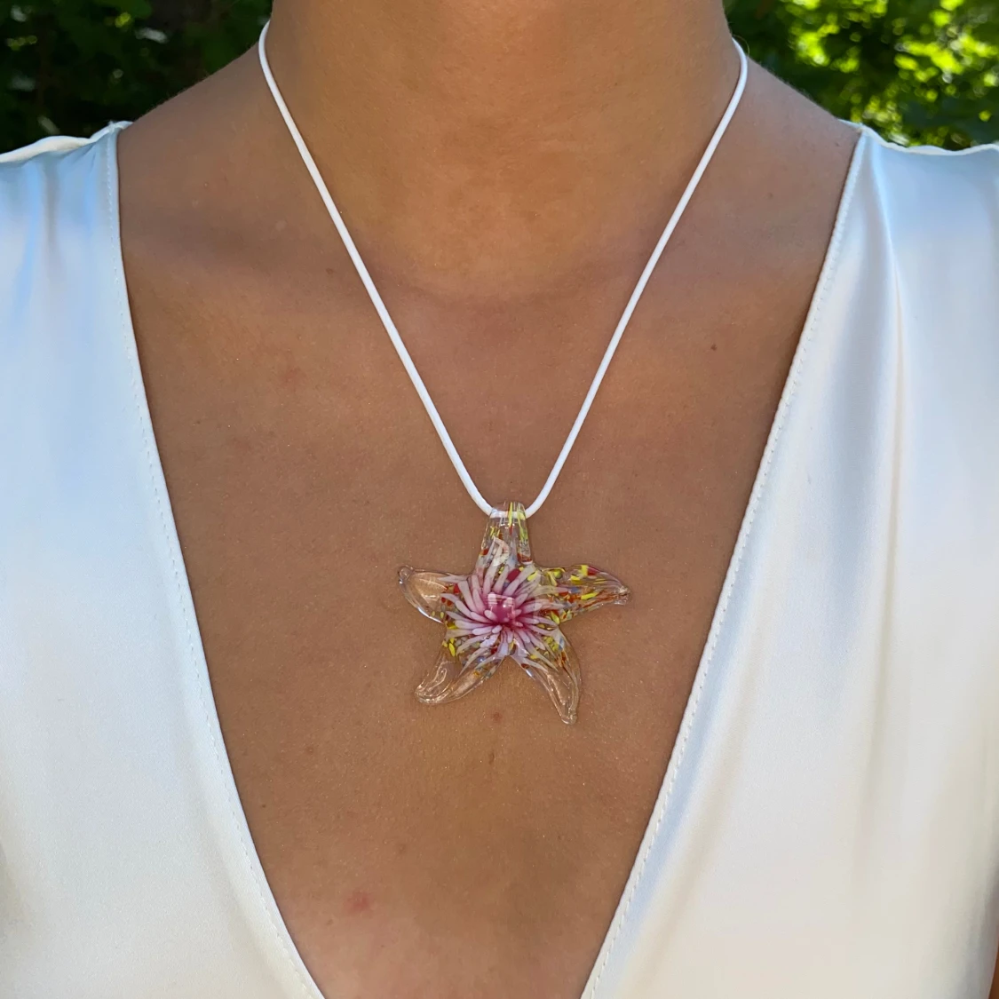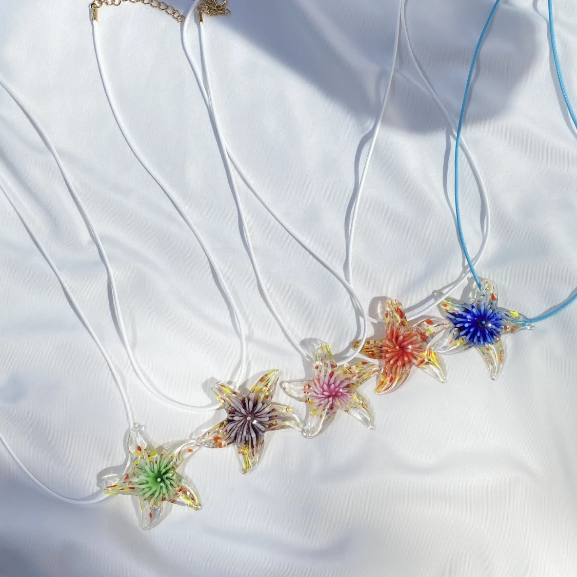 Skriv för fler bilder! 🩵Säljer dessa halsband i 5 olika färger som är på bilderna. Berlockerna är gjorda i glas och med tillkommer ett band. Till dem blåa får man ett blått band, resterande får man vita.