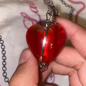 En berlock formad som ett rött hjärta, Den har ej andvänds och är köpt på secondhand för 20kr. Armbandet ej till salu