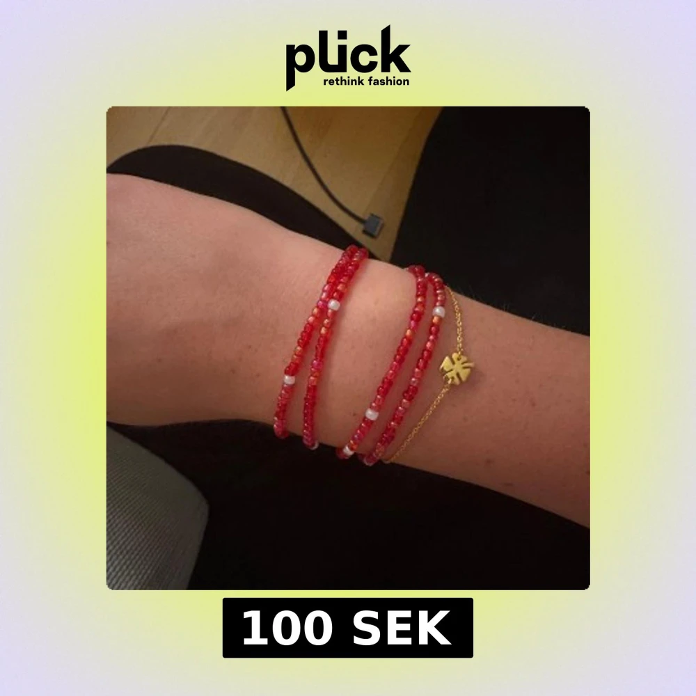 Unikt armband med små röda och vita pärlor som snurrar flera varv runt handleden. Perfekt för dig som gillar att sticka ut med accessoarer! kontakt med önskade farg och storlek - och hur många gånger du vill att den snurrar runt! priset är förhandlingsbart ☺️