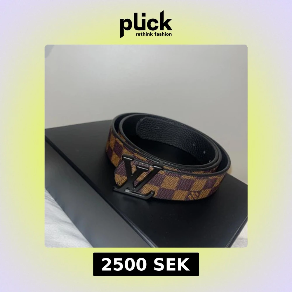 Snyggt bälte från Louis Vuitton med ett klassiskt rutigt mönster i brunt och svart. Bältet har en stilren metallspänne med LV-logotypen. Perfekt för att ge en lyxig touch till din outfit.