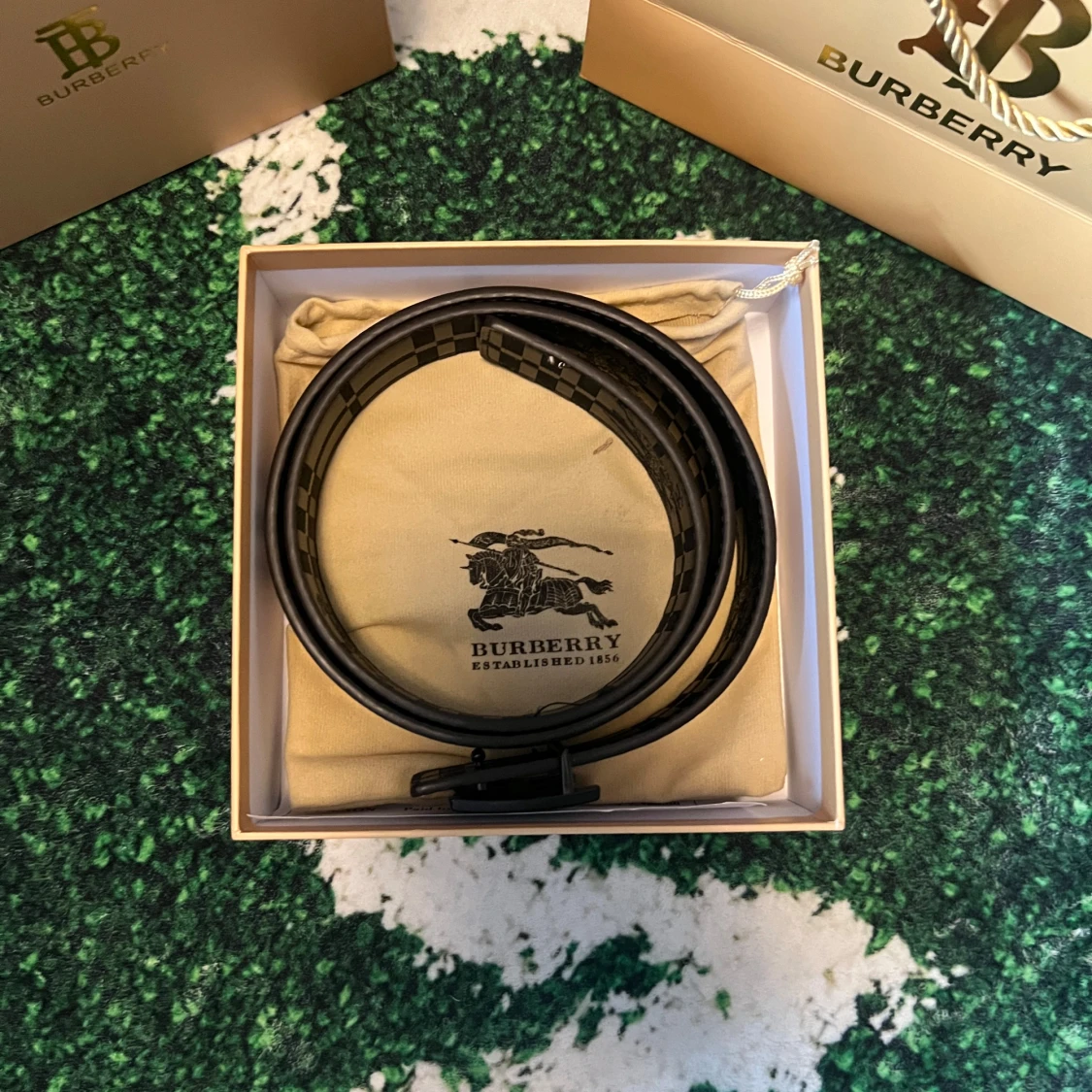 Säljer ett snyggt bälte från BT med klassiskt rutigt mönster i beige, rött och vitt. Bältet har ett stort svart metallspänne med BT logotyp. Perfekt accessoar för att lyfta din outfit. Vid mer funderingar skriv!!