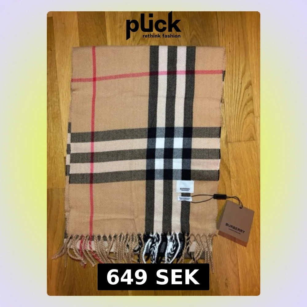 Snygg halsduk från Burberry i klassiskt rutigt mönster med beige, svart, vitt och röda detaljer. Scarfen är tillverkad i 100% kashmir och har fransar längs nederkanten. Perfekt för dig som gillar lyxiga och tidlösa plagg med ikonisk design.