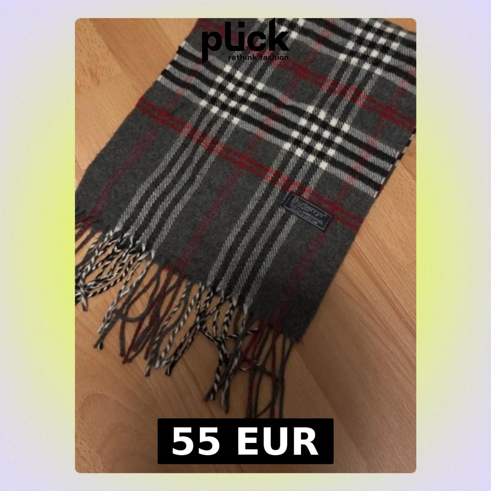 Säljer en klassisk rutig halsduk från Burberrys i 100% lammull. Den har en snygg grå bas med inslag av vitt, svart och rött i mönstret. Halsduken har fransar i ändarna och en vävd Burberrys-etikett. Perfekt för att ge din outfit en tidlös touch.