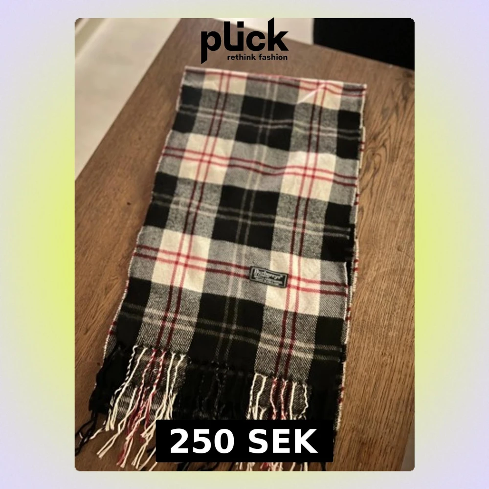 Klassisk rutig halsduk från Burberrys i 100% ull. Halsduken har fransar i ändarna och den ikoniska Burberrys-etiketten. Perfekt accessoar för att lyfta din outfit. Anledningen att de stör ”burberrys” är för att de är en äldre modell.