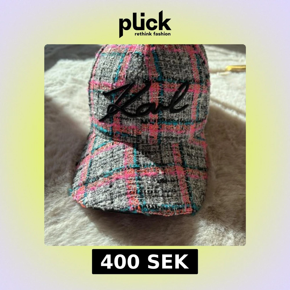 Trendig keps från Karl Lagerfeld med ett färgglatt rutigt mönster i grått, rosa och blått. Kepsen har en broderad logga framtill och är perfekt för att ge din outfit en färgklick.