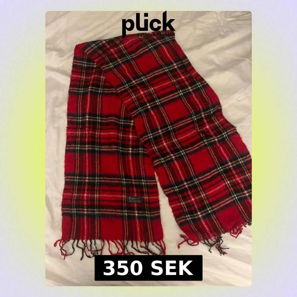 Säljer en klassisk rutig väst från Burberrys i starkt röd färg med inslag av svart, vitt, gult och blått. Västen är tillverkad i 100% lammull och har fransar längst ner. Perfekt för dig som gillar tidlös brittisk stil och vill sticka ut.