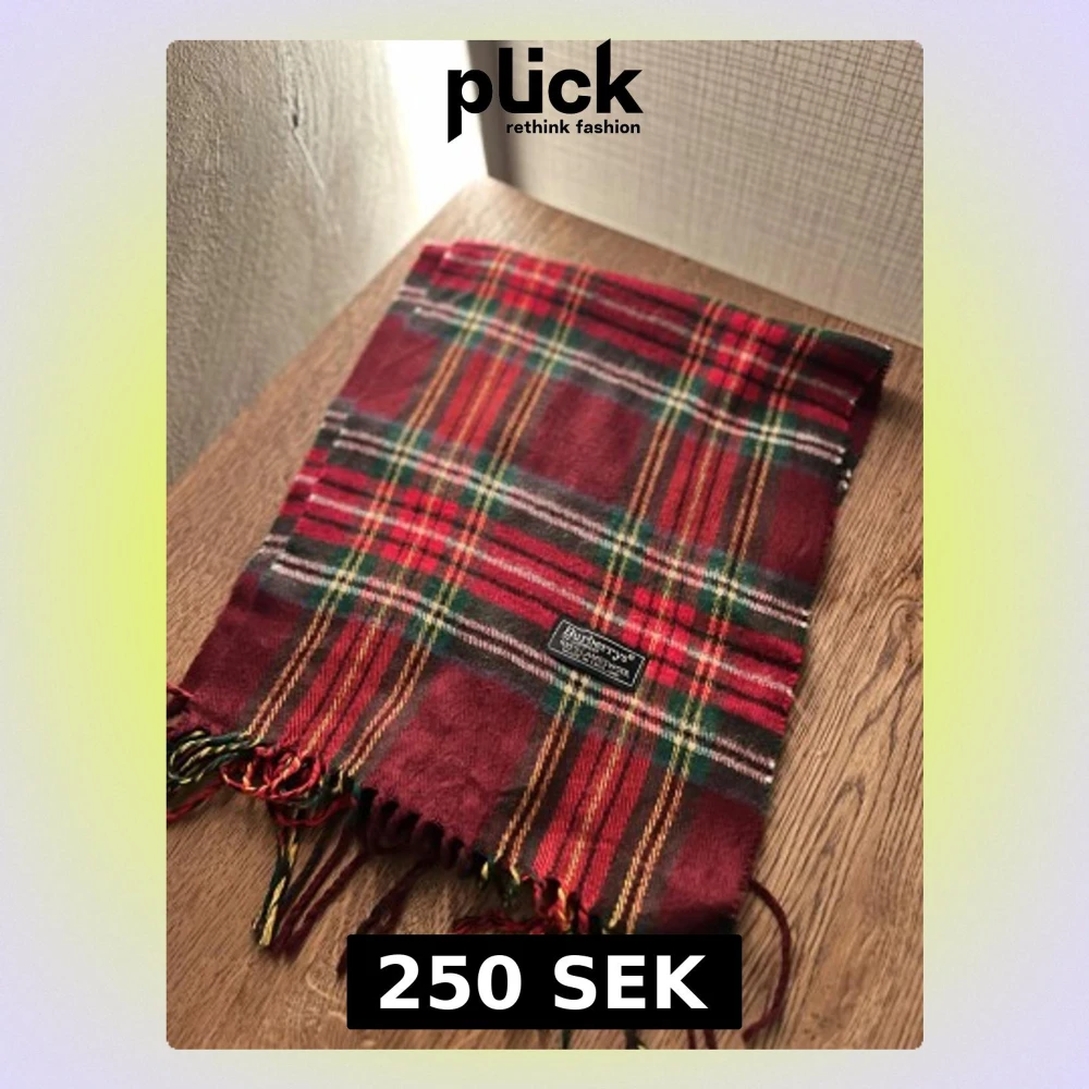 Klassisk rutig halsduk från Burberrys i 100% ull. Halsduken har fransar i ändarna och den ikoniska Burberrys-etiketten. Perfekt accessoar för att lyfta din outfit. Anledningen att de stör ”burberrys” är för att de är en äldre modell.