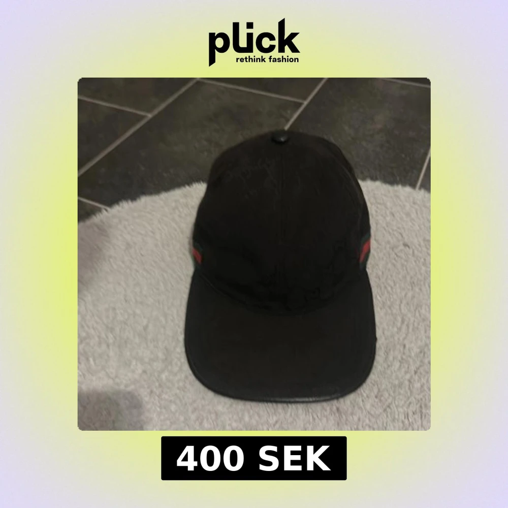 Svart keps med böjd skärm och diskreta röd-gröna ränder på sidorna. Klassisk modell med knapp på toppen och paneler. Perfekt accessoar för en clean streetstyle-look. Mer info kom privat!!!