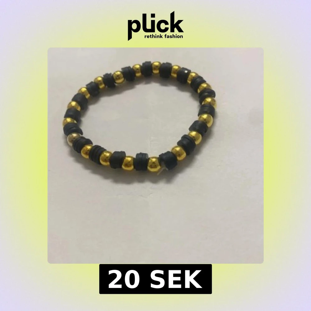 Coolt armband med svarta och guldiga pärlor i rund form. Pärlorna är varvade och sitter på en elastisk tråd, vilket gör det enkelt att ta på och av. Perfekt accessoar för att ge din outfit lite extra edge.