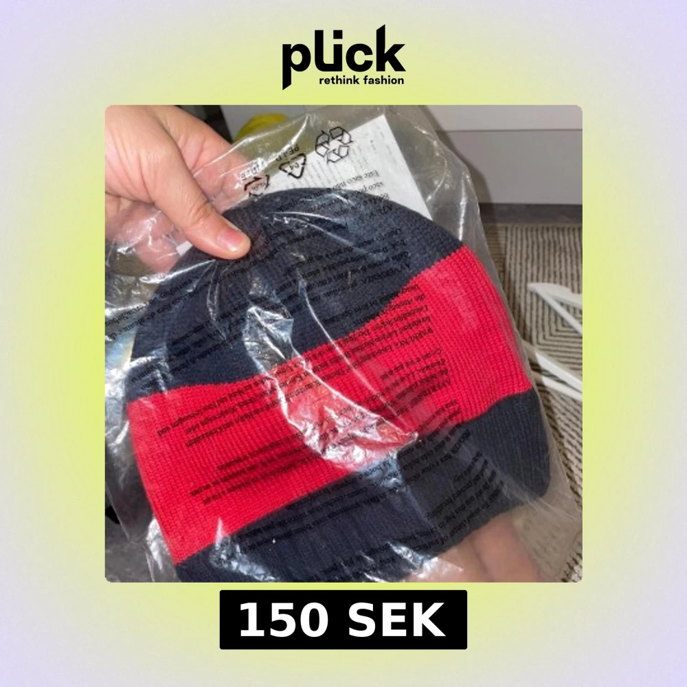 Snygg stickad mössa med breda ränder i marinblått, rött och vitt. Mössan har en klassisk form och är perfekt för dig som vill ha en färgglad accessoar till kalla dagar. Materialet är mjukt och stretchigt för skön passform.