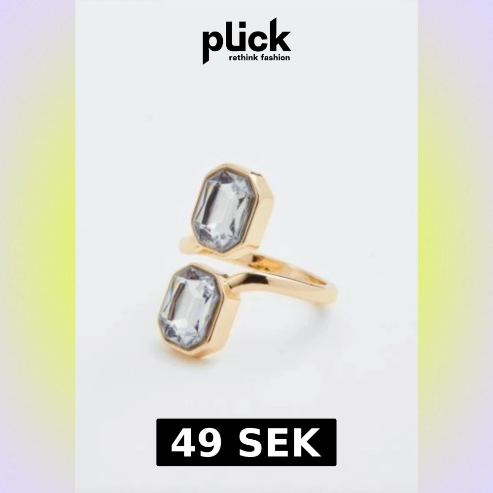 Snygg guldfärgad ring med två stora, rektangulära klara stenar som ger en lyxig vibe. Ringen har en öppen design där stenarna sitter parallellt och fångar ljuset på ett coolt sätt. Perfekt för dig som vill sticka ut med dina accessoarer.