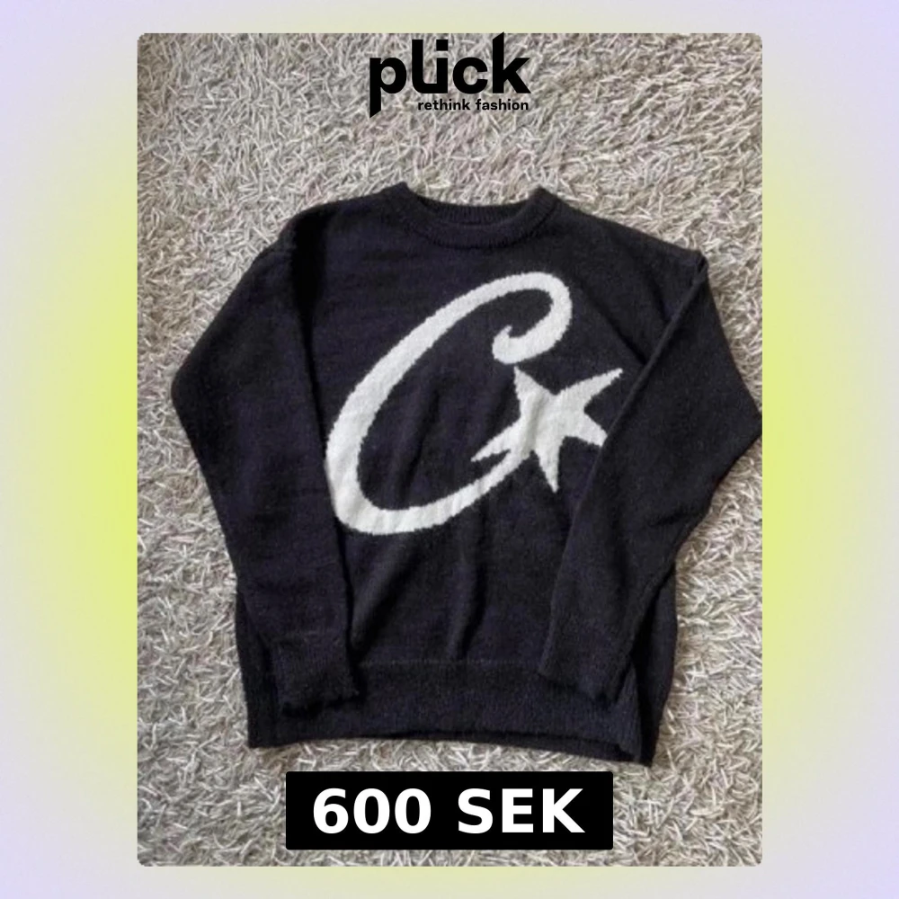 Svart stickad tröja från Corteiz med stor vit stjärna och C på framsidan. Tröjan har rund halsringning och ribbade muddar. Perfekt för dig som gillar streetwear och vill sticka ut med en snygg grafisk design.
