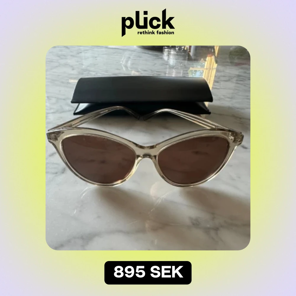 Supersnygga Cat-eye solglasögon i genomskinlig greige-färg. Har använts ett fåtalgånger och är därför i mycket bra skick. Dock finns ett litet jack på insidan men det är inget som syns när de är på.