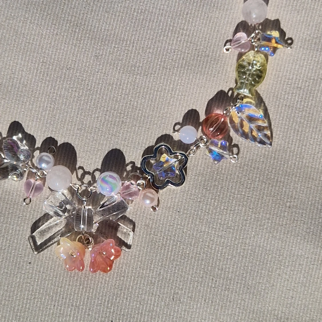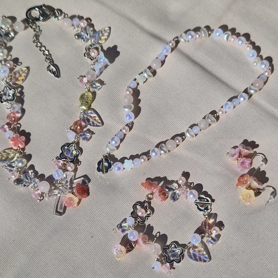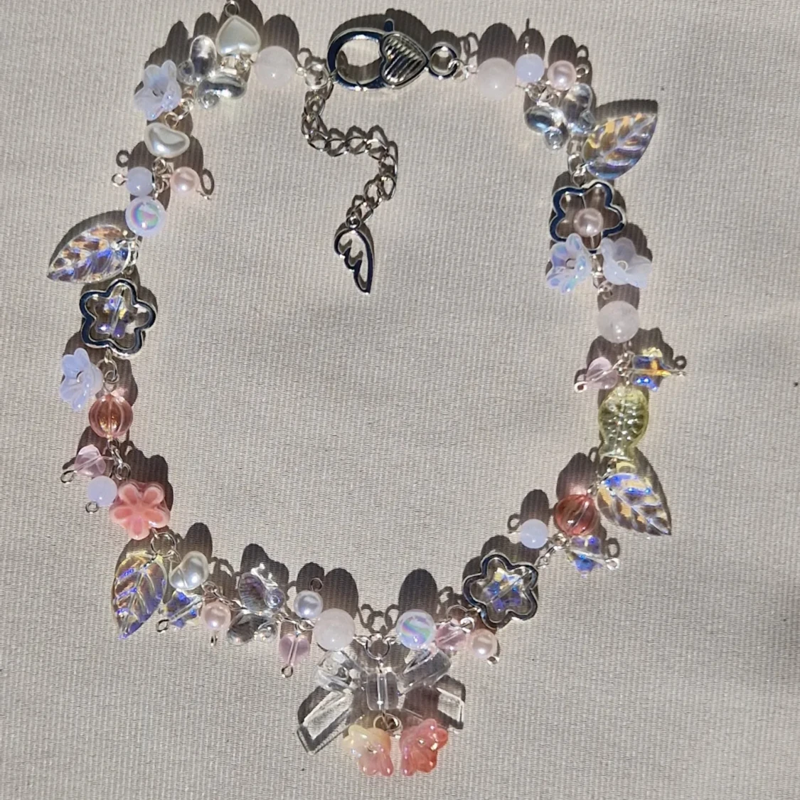 ☆●•○°▪︎ Består till större delen av silverpläterad, "tarnish resistant" (missfärgas inte), metalltråd, och andra fina pärlor. ☆Är justerbar i storleken.