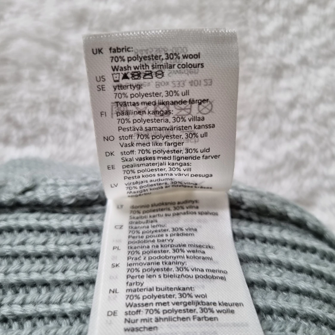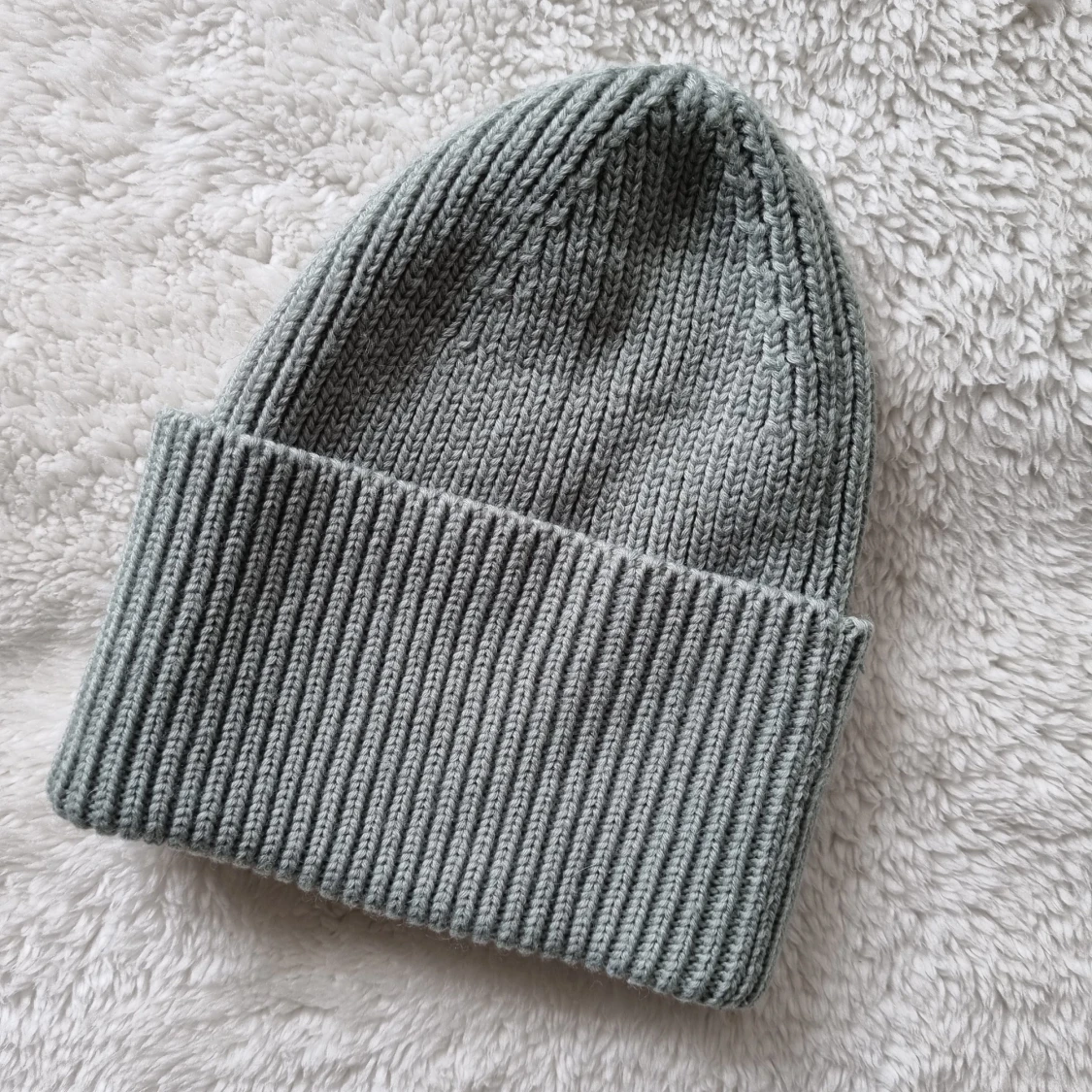 Snygg ljusgrön ribbstickad mössa med bred uppvikt kant. Tillverkad i en mjuk blandning av 70% polyester och 30% ull som håller dig varm och bekväm. Perfekt för kyliga dagar och enkel att matcha med olika outfits. Knappt använd.