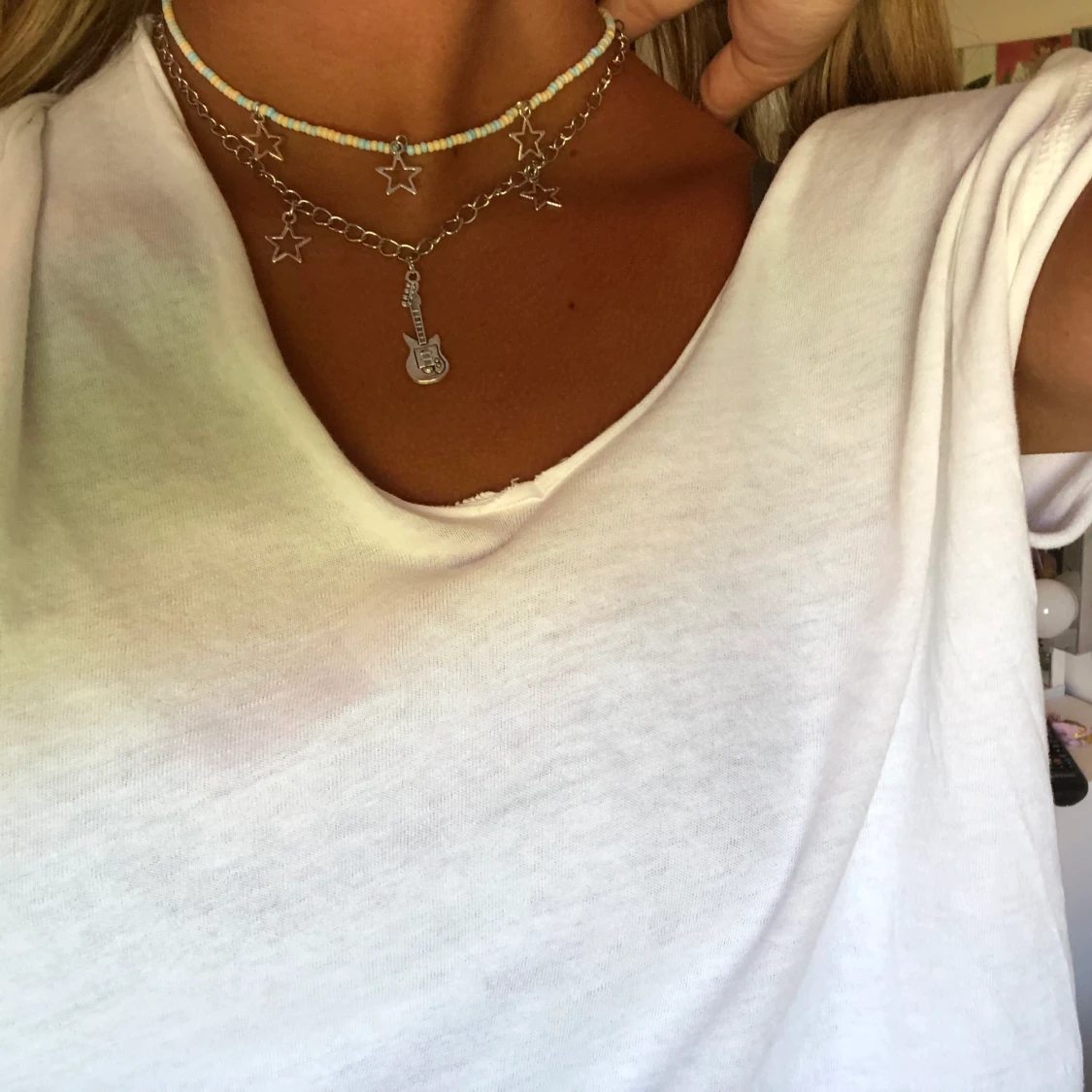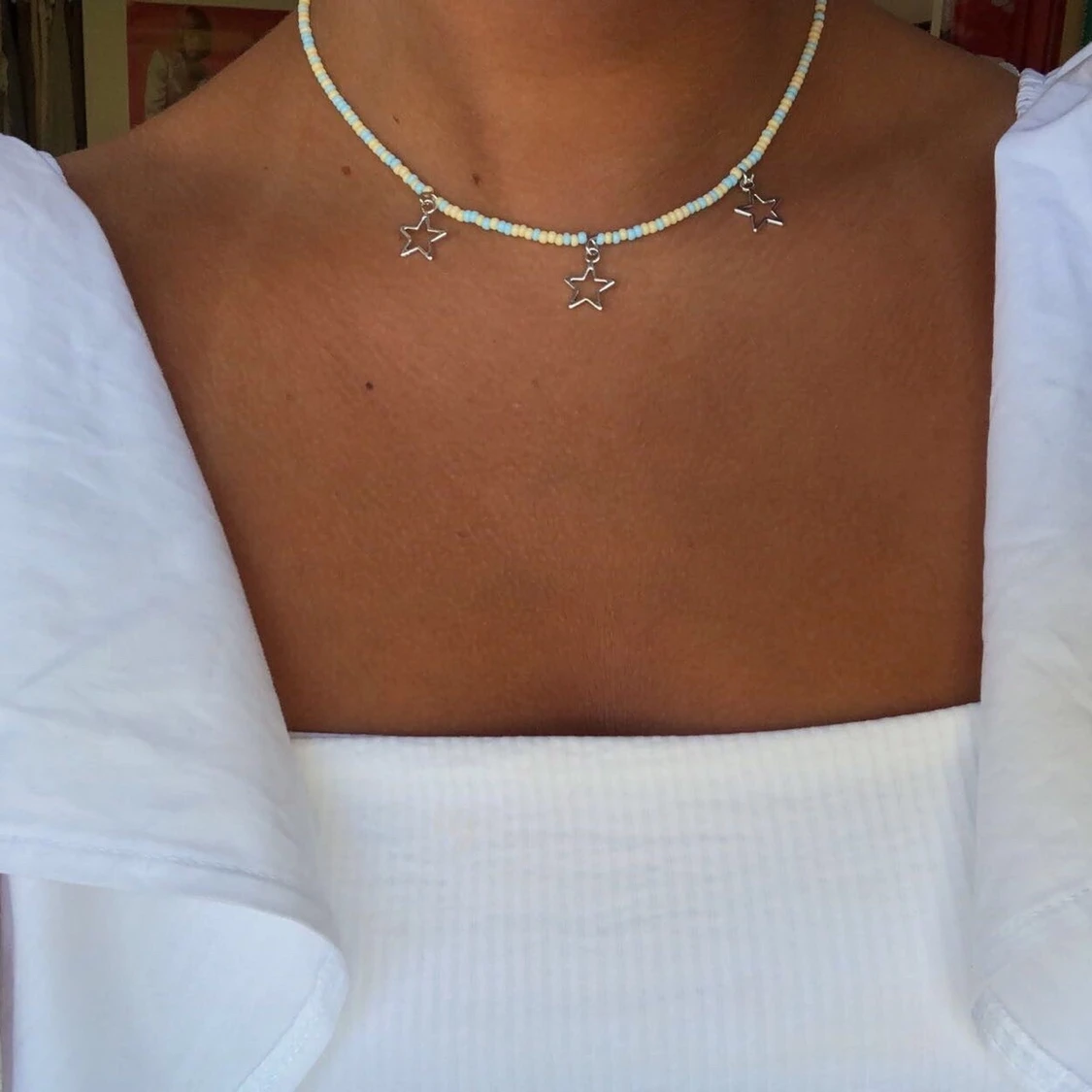 💛 Blått/gult halsband med stjärnor 💙 75kr. (Frakt inkluderad) SWIPE för stylingtips