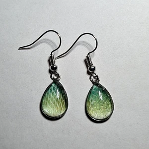 Ett par örhängen gjorda på ormskinn, majsorm