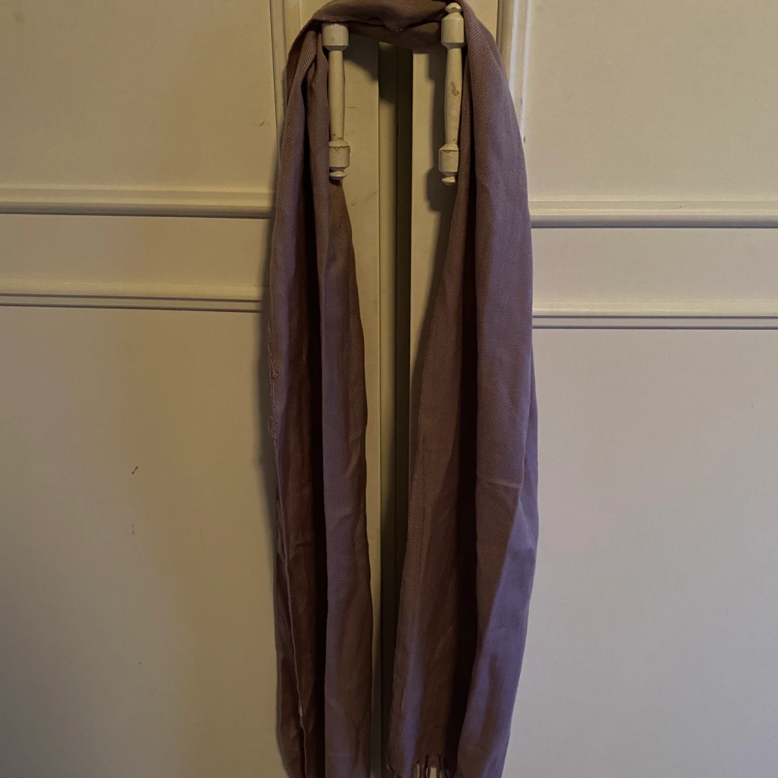 Lila scarf/halsduk med fransar nedtill. Finns i Västerås, annars står köparen för frakt.