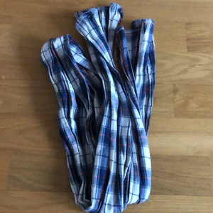scarf i marinblått, vitt och orange, ca 1,40 lång