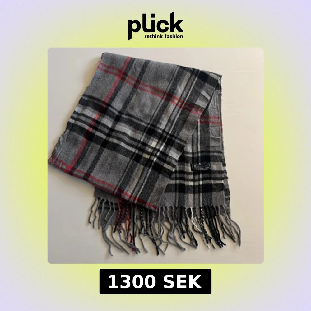 Säljer en stilren grå rutig halsduk från Burberry, tillverkad i 100% lammull. Använd några få gånger men ändå nyskick.