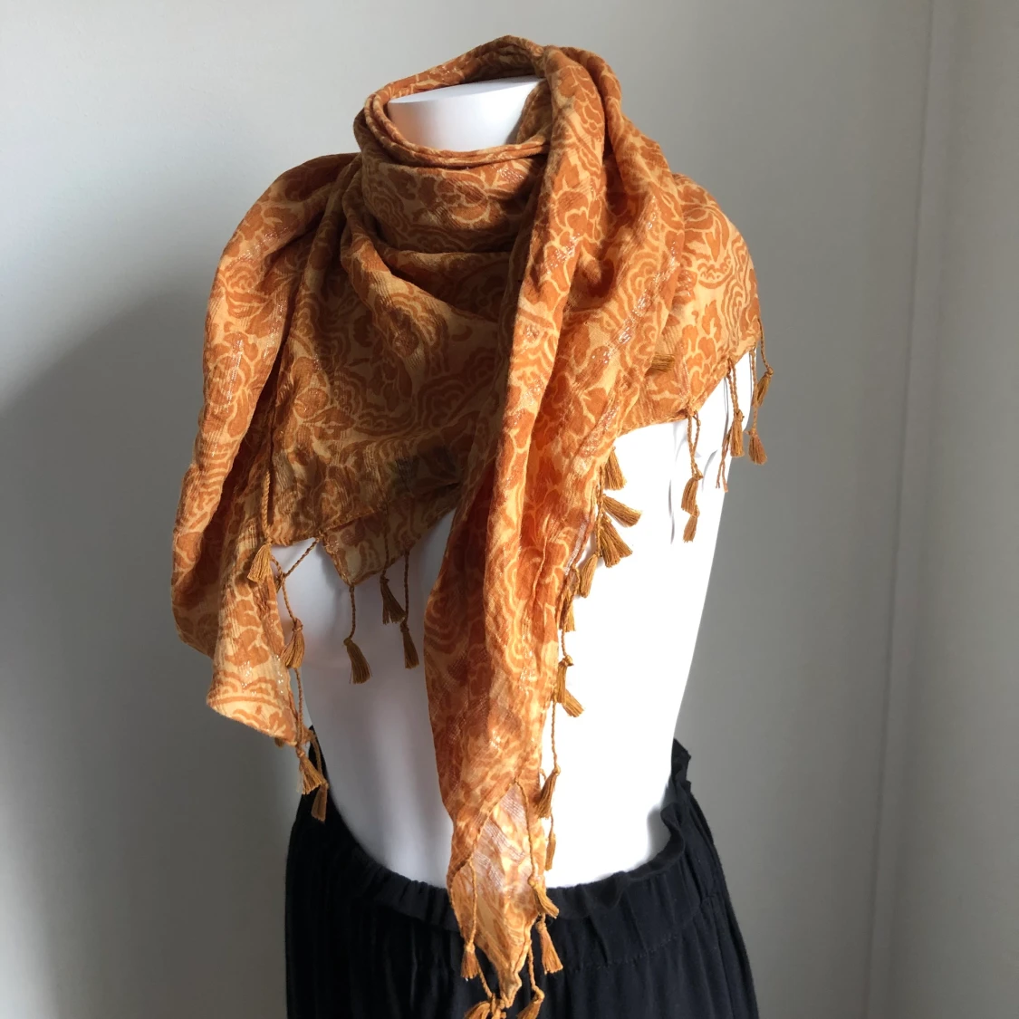 Scarfar från olika märken. Den i Orange är från Noa Noa. Den mönstrade från Vagabond och den svarta är köpt på Second hand. Pris per styck