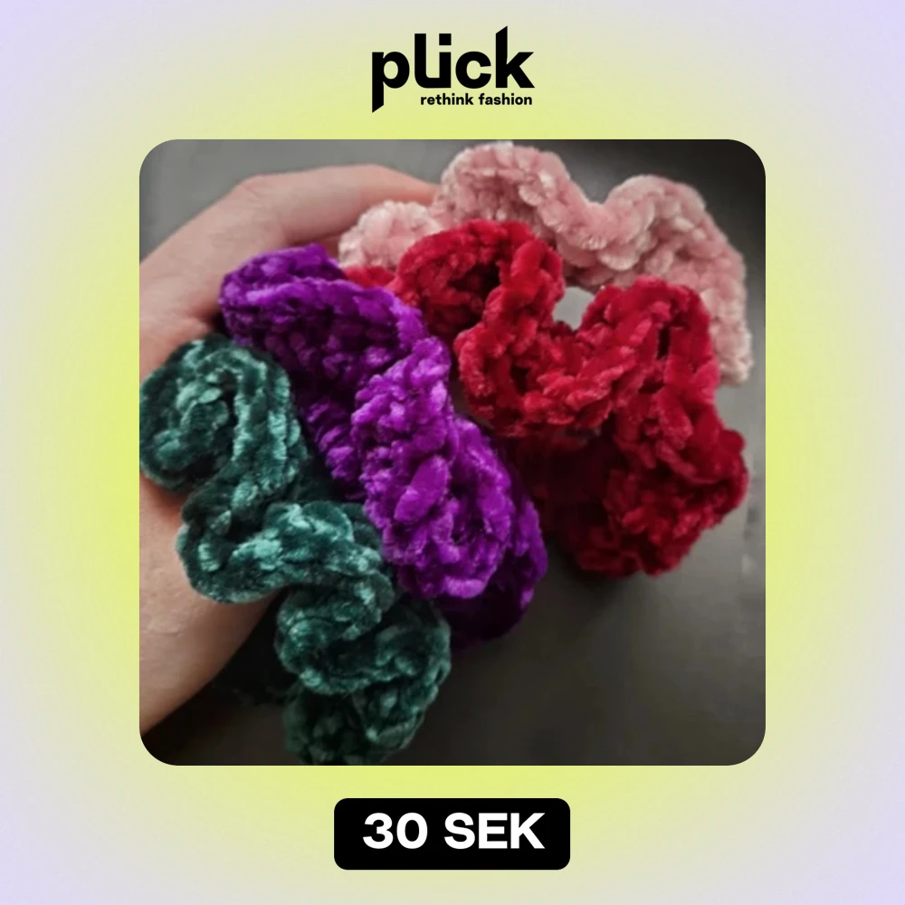 Soft and colorful crochet scrunchies made by me. Material: Soft plush yarn Size: 9cm in diameter 30kr for 1 piece.