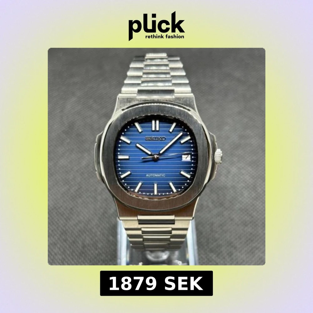 Snygg herrklocka från Seikmod med automatisk urverk och datumvisning. Boetten är i borstat silverfärgat stål och har en unik, rundad fyrkantig form. Urtavlan är blå med horisontella ränder och silverfärgade index. Länken är också i stål och ger en modern vibe.