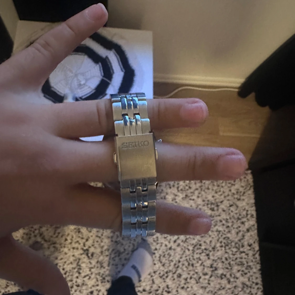 Snygg herrklocka från Seiko med en stilren design. Klockan har en silverfärgad länkarmband och en urtavla med svarta och vita detaljer. Perfekt för den som söker en klassisk och tidlös accessoar. Nypris 4000kr